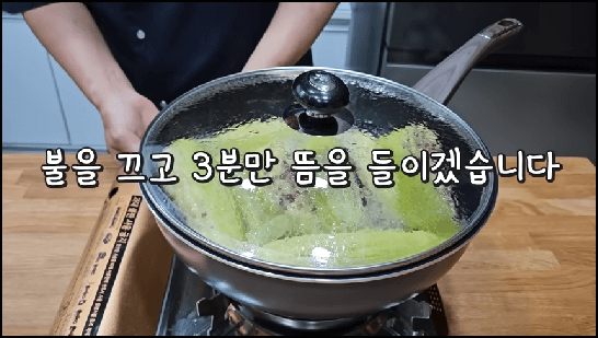 10분을 약불에서 더 삶은 후 불을 끄고 3분 정도 뜸을 들여줍니다. 그러면 단맛이 배어들어서 훨씬 더 맛있어집니다.