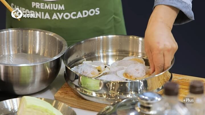 뚜껑을 덮고 강불에서 8분 쪄 줍니다.