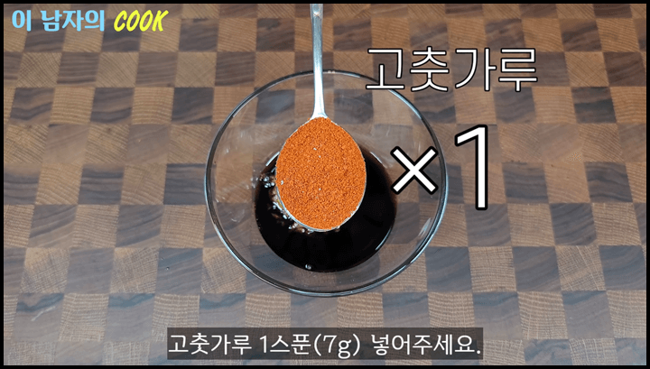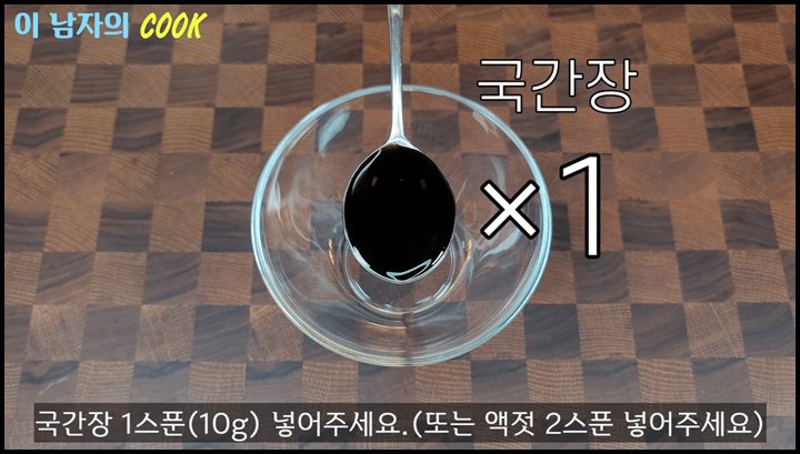 1) 국간장 1스푼을 넣어줍니다. 국간장 대신 액젓 2스푼을 넣어도 됩니다.