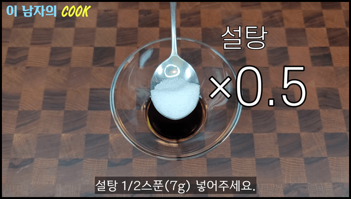 2) 설탕 1/2스푼과 양조간장 2스푼을 넣어줍니다.