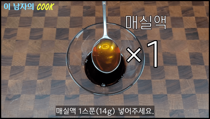 3) 매실액 1스푼을 넣어서 새콤달콤 감칠맛을 더해줍니다.