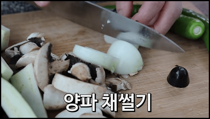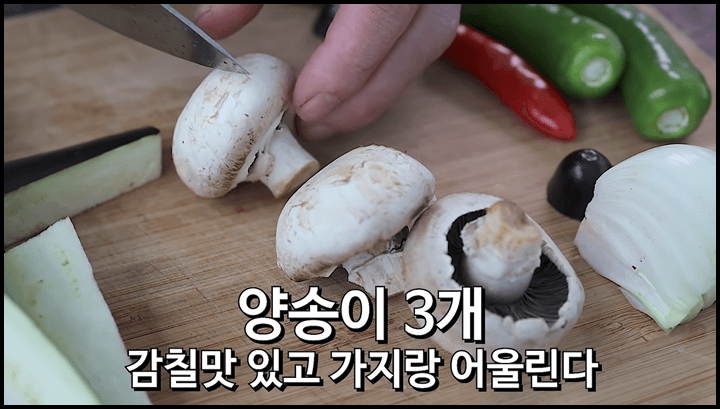 3) 양송이버섯도 도톰하게 잘라줍니다.