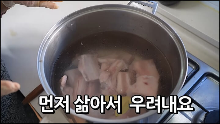 불에 올려서 뼈를 먼저 삶아서 우려내 줍니다. 맛있는 국물이 나오도록 먼저 삶아주는 것입니다.