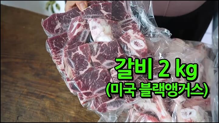 갈비 2kg(미국 블랙앵거스)을 준비하는데 갈비탕용으로 조금 저렴한 것을 구입하면 됩니다. 그리고 한우 갈비뼈는 서비스로 잘 끼워주는데 함께 넣어서 끓이면 더 진하고 고소한 국물을 낼 수 있습니다.