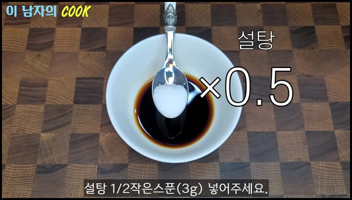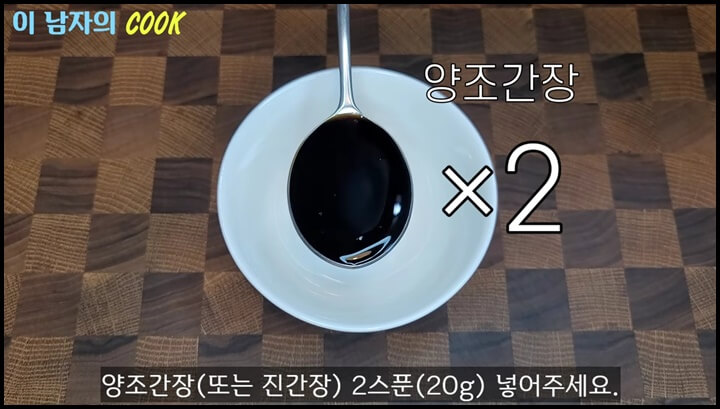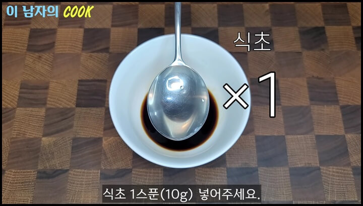 1) 양조간장 2스푼에 식초 1스푼을 넣어줍니다.