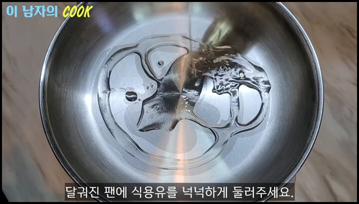 1) 팬을 예열한 후 식용유를 넉넉하게 둘러줍니다.