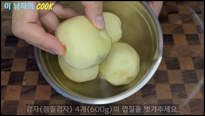 1) 점질감자를 준비하였다면 껍질을 모두 벗겨줍니다.