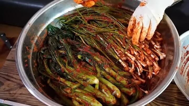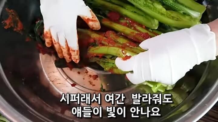 6. 갓김치 맛있게 담그는법 - 양념에 버무리기