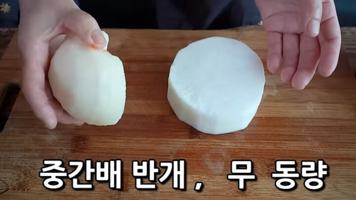 중간배 반 개 + 무 동량 갈기