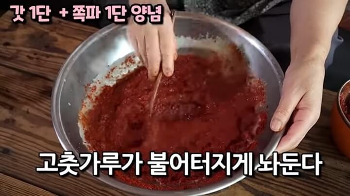 골고루 잘 섞은 후에 고춧가루가 붇도록 그대로 놓아둡니다.