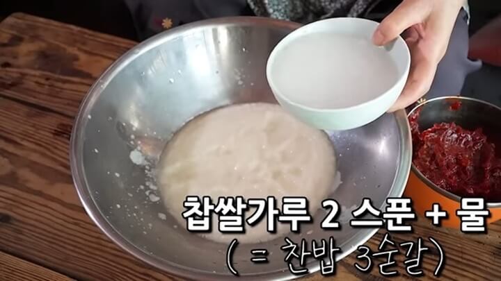 찹쌀풀 2 숟갈 + 물 1컵 대충(찬법 3 숟갈)