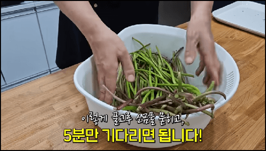 이제 고구마줄기 볶음을 부드럽게 하는 비법 한 가지를 소개드립니다. 그 비법은 바로 아래와 같습니다.