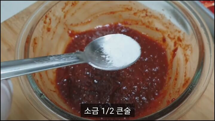 마지막으로 소금 1/2큰술을 넣어서 양념장을 완성합니다.