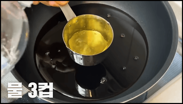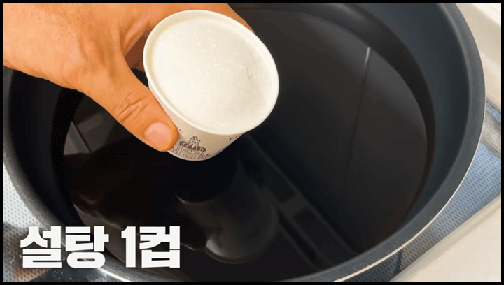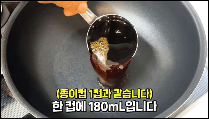 1) 냄비에 간장 종이컵 3컵을 넣어줍니다.