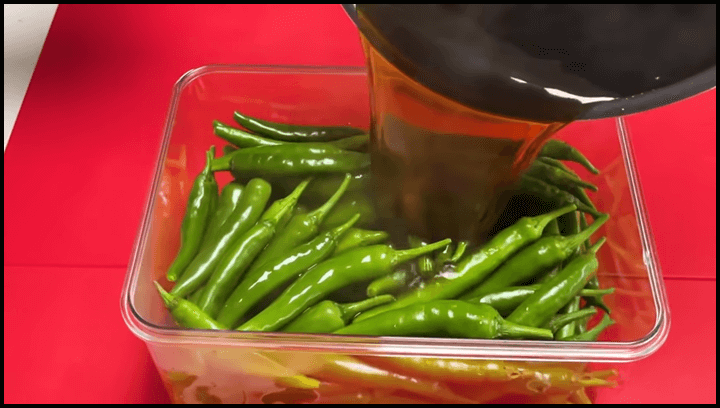 3) 식힌 후 고추에 간장물을 부어줍니다.