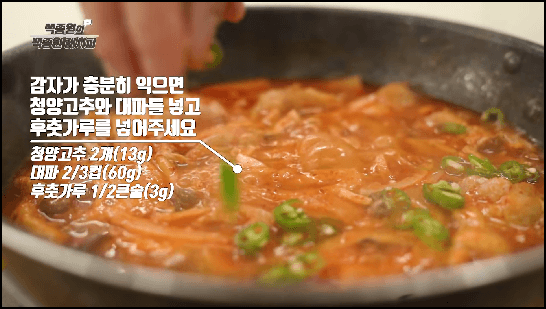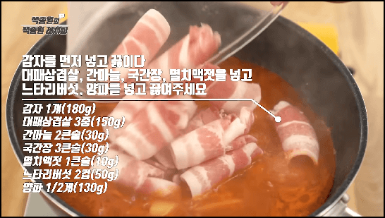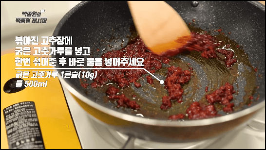 [출처: 유튜브 백종원, 고추장찌개 만드는법, 백종원 돼지고기 고추장찌개]