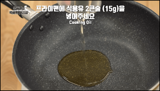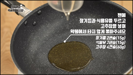 4) 팬에 참기름과 식용유를 두르고 고추장을 넣어 약불에서 타지 않게 볶아준다.