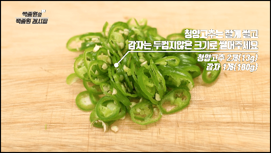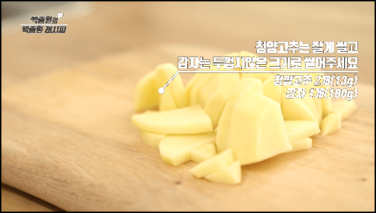 2) 청양고추는 잘게 썰고, 감자는 두껍지 않은 크기로 썰어 준다.