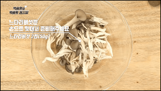 3) 느타리버섯은 손으로 찢어서 준비한다.