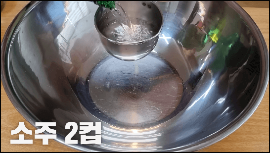 1) 가장 먼저 소주 2컵을 넣어줍니다. 1컵은 200ml 용량입니다.