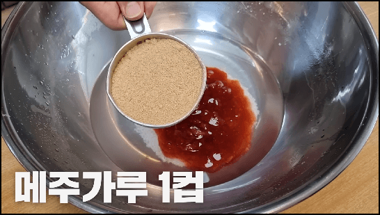 4) 메줏가루 1컵을 넣어서 잘 섞어줍니다.