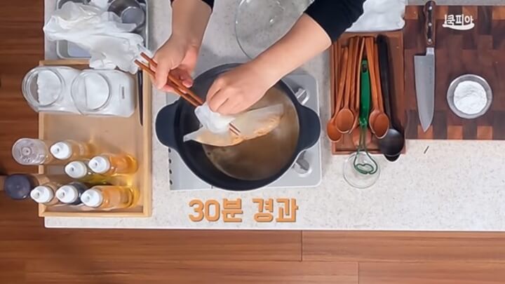 풀죽을 끓인 다음 차게 식혀둡니다.