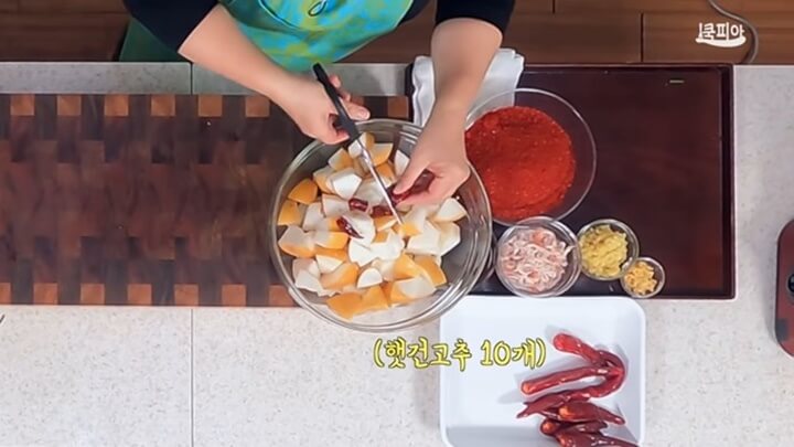 8. 김장김치 맛있게 담는법 - 과일 건고추 무즙 만들기