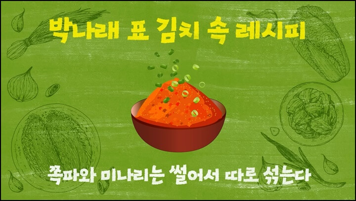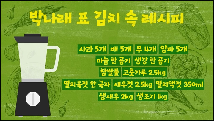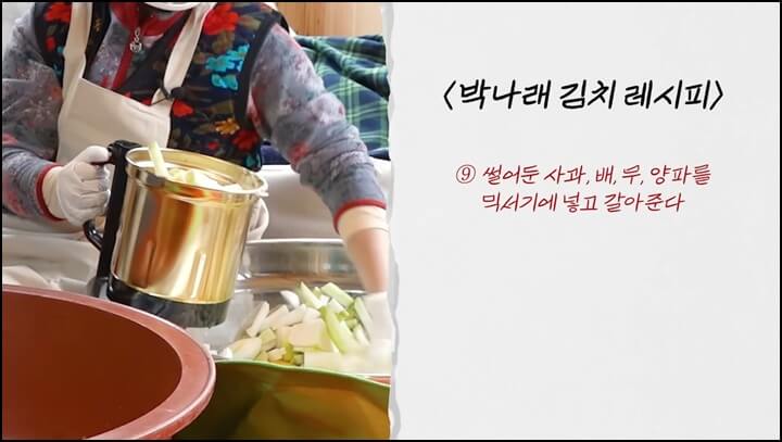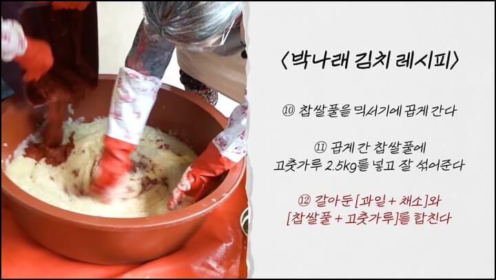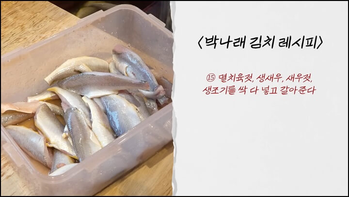 박나래표 김장김치 맛있게 담는법, 감칠맛과 시원한 맛을 내주는 생새우와 멸치육젓에 생조기까지 들어가고 과일과 야채도 풍성하게 들어가서 아주 맛있는 김장김치가 될 것 같습니다.