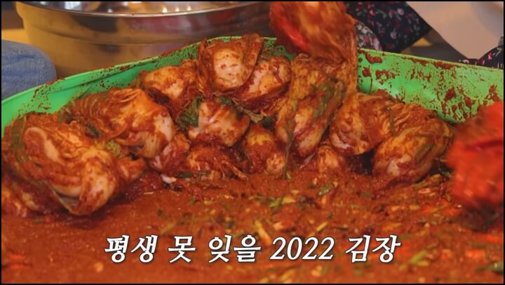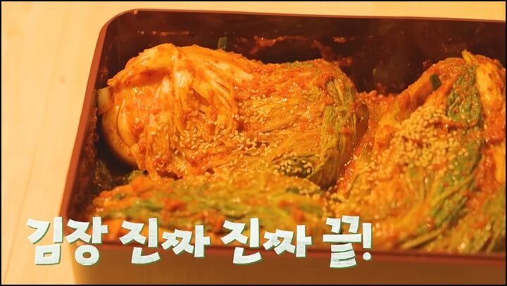 생새우와 생조기가 들어가서 시원하면서 깊은 맛이 날 것 같은 김장김치인데요, 박나래표 김치는 맛있다고 소문이 났다네요ㅎ 김치 속 양념을 다 만들고서 맛보던 한혜진님도 눈이 동그랗게 커지며 너무 맛있다고 놀라더라구요.