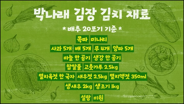 김장김치 맛있게 담는법, 소문난 박나래 김장김치 10포기 20포기 양념 비율에 필요한 재료 소개합니다.