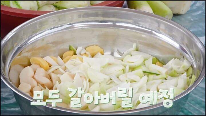 그리고 나래네 김장은 모든 재료를 싹~~다 갈아서 한답니다!