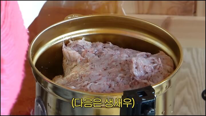 손질한 생조기를 믹서기에 넣고, 생새우도 같이 넣어줍니다. 멸치육젓 한국자도 넣고, 새우젓도 넣고 갈아줍니다. 생조기를 갈아주는거라 너무 많은 양을 넣으면 잘 갈리지 않으니 조금씩 적당히 넣어 갈아줍니다.