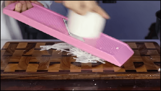 김장김치에 무채가 들어가면 훨씬 풍성하고 맛있는데요, 무 1개를 채 썰어서 준비합니다. 채칼을 이용하면 훨씬 수월하고 두께도 일정하게 자를 수 있으니 채칼로 썰어주면 됩니다.