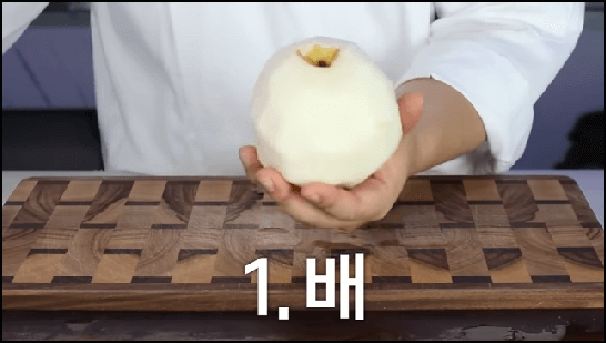 배 1개, 통마늘 20톨, 생강 2톨, 양파 2개