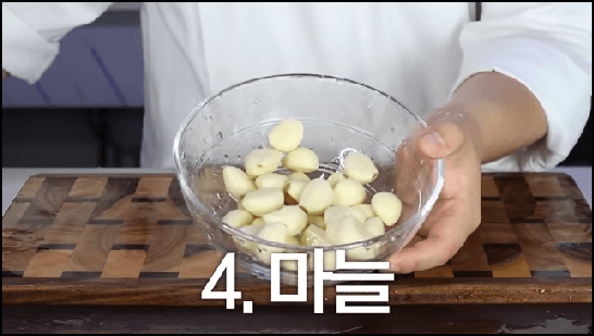 마늘 20알도 같이 넣어주는데, 마늘의 꼭지를 제거해 주는 것이 좋습니다. 그래야 마늘을 씹었을 때 쓴맛이 나지 않습니다.