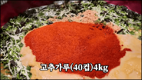 [출처 : 유튜브 양장금주부, 김장김치 양념만들기, 김장김치 20포기 20kg 40kg 80kg양념 비율]
