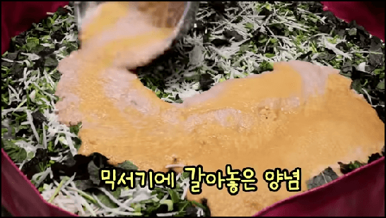 청각을 그대로 넣게 되면 김장김치가 지저분하게 보일 수 있기 때문에 믹서기에 갈아서 넣어주면 보기에도 깔끔하고 시원한 맛도 올려주니 더욱 좋습니다.