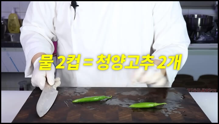 김치 안에 마늘이랑 대파는 다 들어가 있으니 여기에 청양고추 하나가 들어가면 김치전 맛이 더욱 배가됩니다. 청양고추는 물 1컵당 1개를 넣으면 됩니다. 아주 가늘게 썰어줍니다. 그래야 먹을 때 이물감 없이 맛있게 먹을 수 있습니다.