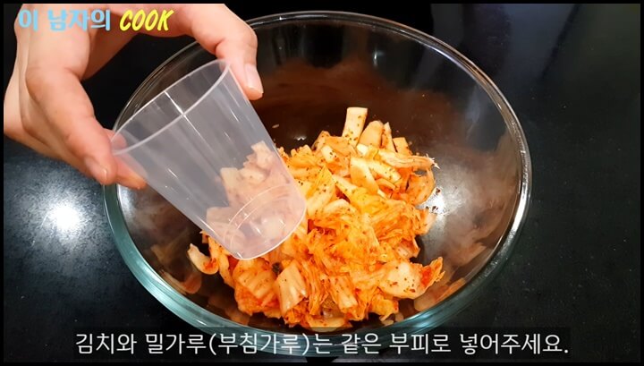 [출처 : 유튜브 이 남자의 쿡, 김치전 맛있게 하는 법, 바삭바삭한 김치전 만들기]