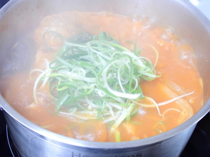 김치찌개 맛있게 만드는 방법, 간 맞추고 대파 넣어 마무리하기