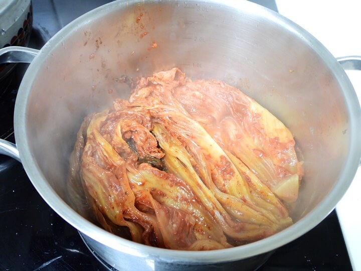 제가 김치찌개 맛있게 만드는 방법 중 하나는 김치를 아주 푹 익히는 것이고요, 물론 신김치를 사용합니다.