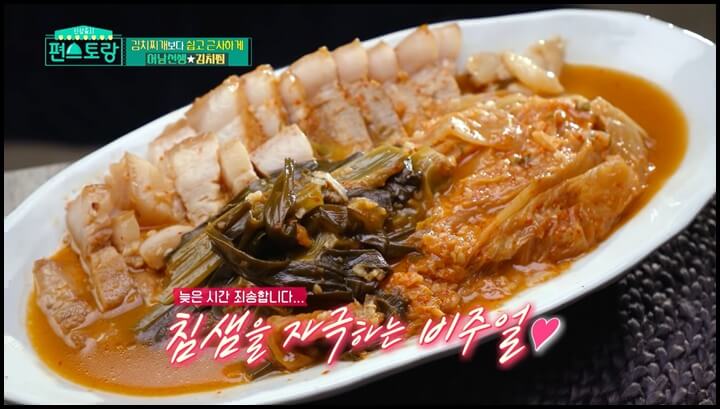 [출처 : 편스토랑 류수영, 돼지고기 김치찜, 묵은지 김치찜, 김치찜 맛있게 만드는 방법]