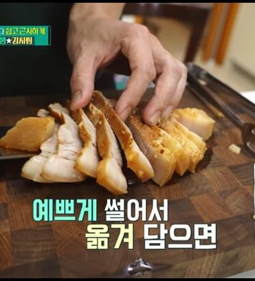 5. 돼지고기 묵은지 김치찜, 류수영 김치찜 맛있게 만드는 방법 - 고기 썰어 담기