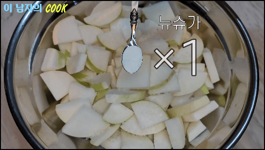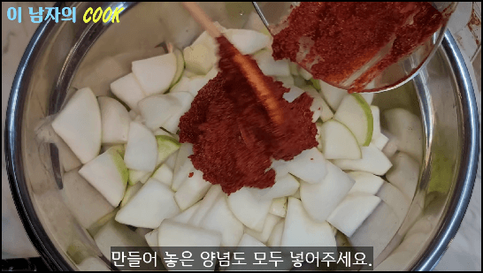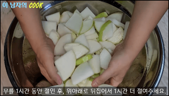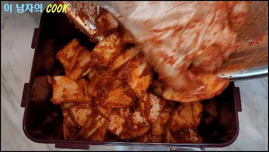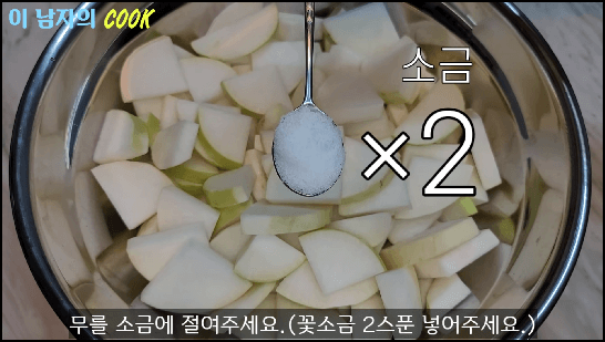 [출처 : 유튜브 이 남자의 쿡, 깍두기 맛있게 담는법, 깍두기 황금레시피]