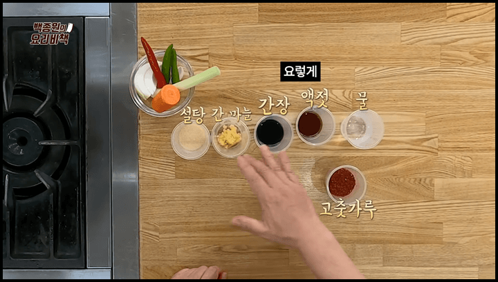 이제 깻잎김치 맛있게 담그는법, 백종원 깻잎무침의 양념장을 만들어 봅시다.