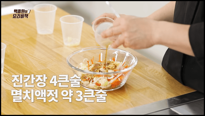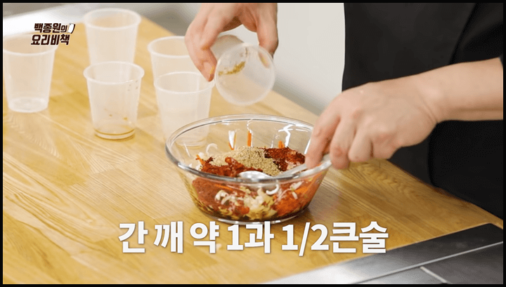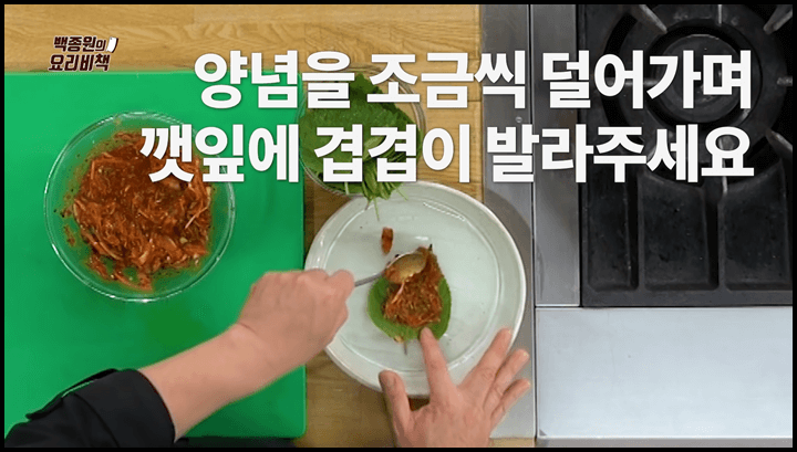 [출처 : 유튜브 백종원 요리비책, 깻잎김치 맛있게 담그는법, 백종원 깻잎무침]