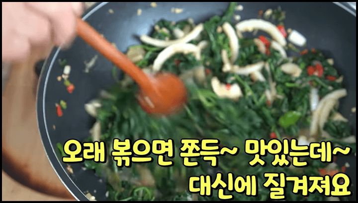 6) 적당히 볶아서 물기가 있는 상태에서 그만 볶고 촉촉하게 먹을 수도 있고, 더 볶아서 쫀득하게 먹을 수도 있습니다. 어떤 것이든 취향껏 선택해서 조리하시면 됩니다.