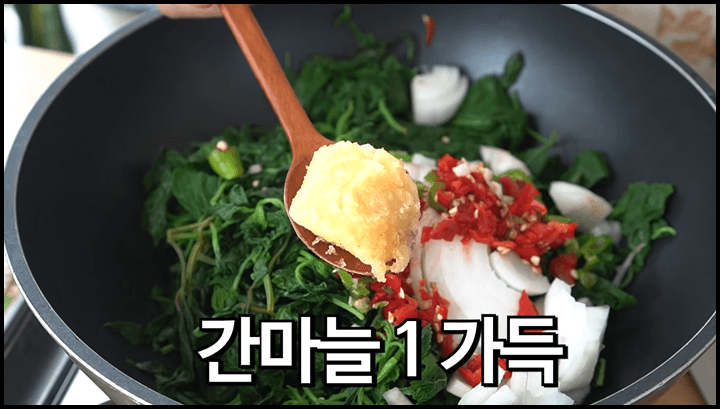 3) 간마늘 가득 1스푼 넣어줍니다.
