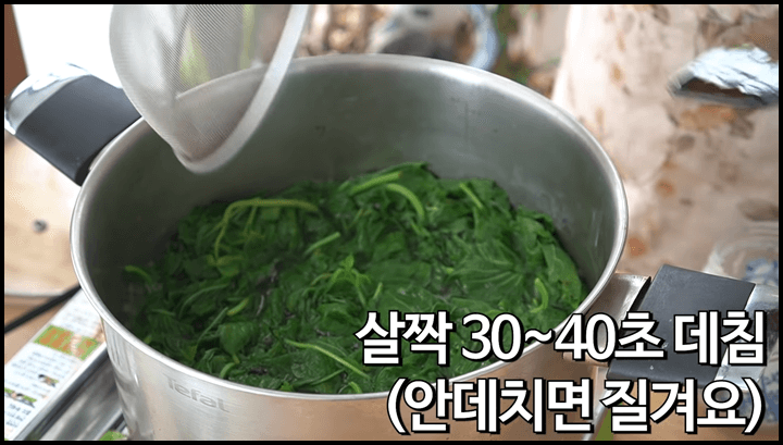 4) 넣고서 살짝 30~40초 정도만 데쳐줍니다.