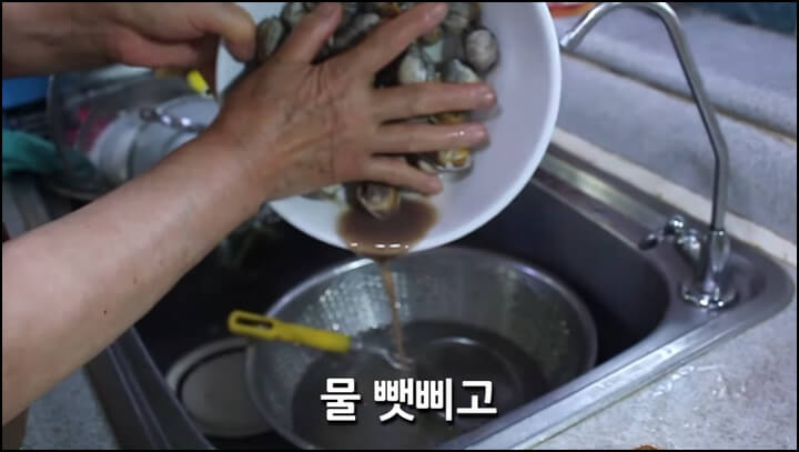 뽀얗게 잘 씻어줘야 물이 고소하니 꼬막은 깨끗하게 씻어줍니다.